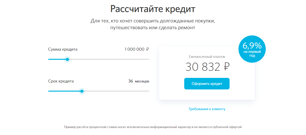 А фраза, которую человек читает сразу после призыва рассчитать кредит? «Для тех, кто хочет совершить долгожданные покупки, путешествовать или сделать ремонт». Эта фраза наводит на мысли о тех самых покупках, которые так давно хотелось сделать, и о желании съездить в отпуск в страну своей мечты, и о том, что квартира и правда требует ремонта. Иначе говоря, банк вас подталкивает к тому, чтобы увеличить сумму кредита в заявке – ведь на ваши мечты и желания (которые вдруг вспомнились) нужны еще деньги.