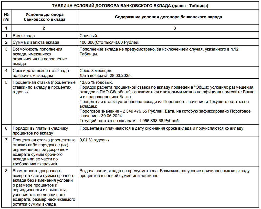 C 1 октября 2022 года1 банки обязаны раскрывать в понятной табличной форме основные условия вклада: информацию о виде, сумме и валюте, возможностях и ограничениях на пополнение, дате возврата вложенных средств, а также о минимальной гарантированной ставке по вкладу в процентах годовых. Например, если по вкладу предусмотрено несколько ставок, банк обязан в таблице раскрыть условия и период применения каждого из установленных ее значений, а также способ информирования вкладчика об их изменении. Это позволит потребителям лучше понимать особенности вкладов, оценивать реальную доходность вложений и делать осознанный выбор между предложениями разных банков.