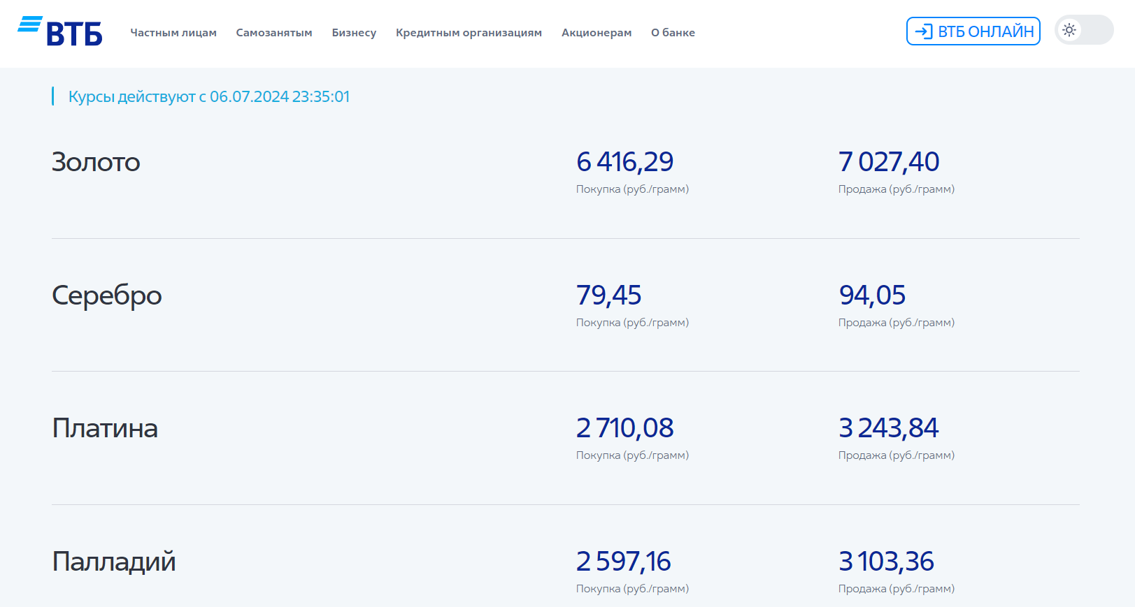 По сути дела, открытие ОМС означает не покупку физического металла, а внесение в банк денег. Внесенные средства условно конвертируются в граммы драгоценного металла по текущему курсу банка на день покупки, который он устанавливает сам с учетом цен на мировом рынке.